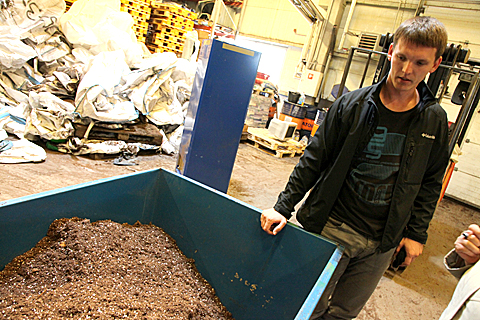 Tsehhis Niibi tehase tootmisjuhi Kristjan Kotka selja taga pakitakse 400 retsepti järgi tehtud kasvuturvast, mille peal kasvab Itaalia, Hispaania, Mehhiko, Iisraeli jt kasvuhoonetes tomat, kapsas, salat jm köögivili. Foto: Arvo Tarmula