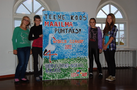 "Meie klassile meeldis see kohe, et saame liituda projektiga "Teeme ära!". Meile meeldib puhas loodus. Käisime suvel terve klassiga jalgrattamatkal Hiiumaal. Nautisime puhast loodust ja tahaksime, et igal pool oleks nii kaunis. Esialgu tahtsime küll nii, et poisid teevad ühe plakati ja tüdrukud teise, aga olime ikka kõik koos joonistamas-värvimas," kirjutasid oma plakatile saateks Uuemõisa kooli 4. klassi õpilased.