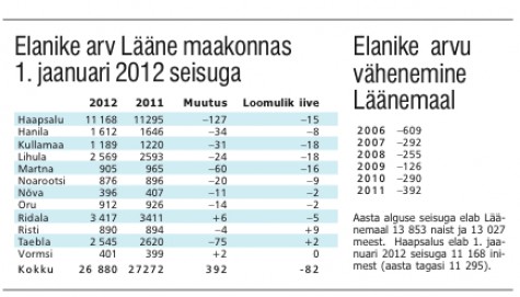 2010-2011 võrdluses vähenes Läänemaa elanike arv “ainult” 290 võrra.