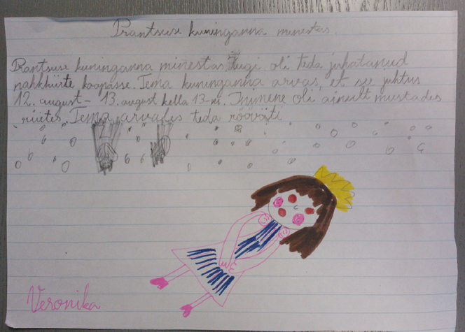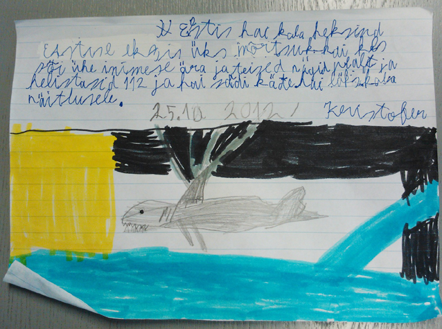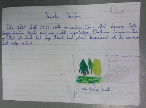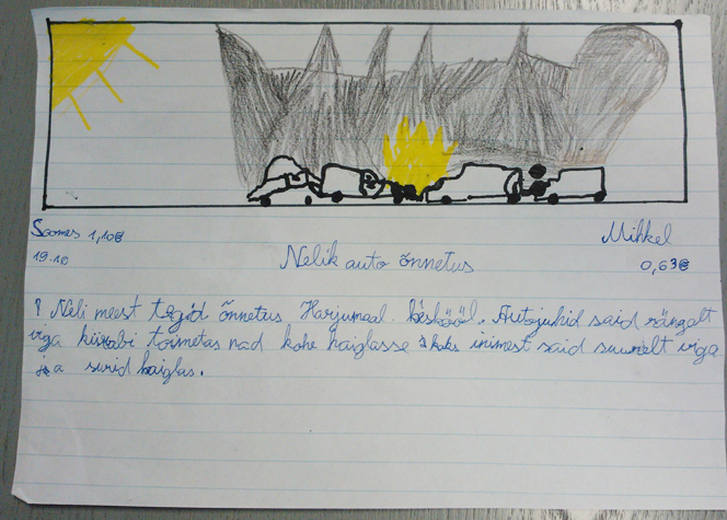 Tunni lõpetuseks rääkisin, kuidas kirjutada ajaleheuudist ja lapsed said ise ühe uudise valmis kirjutada-joonistada. Uudis võis olla kas mõnest päriselt toimunud sündmusest või täiesti välja mõeldud. Lapsed lubasid mul nende töid ka Lääne Elus avaldada.