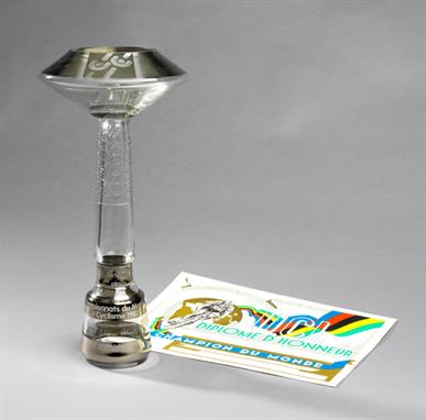 50 cm kõrguse klaasist ja metalldetailidega karika sai Erika Salumäe 1987. aastal Viinis, mil ta võitis oma esimese maailmameistritiitli.