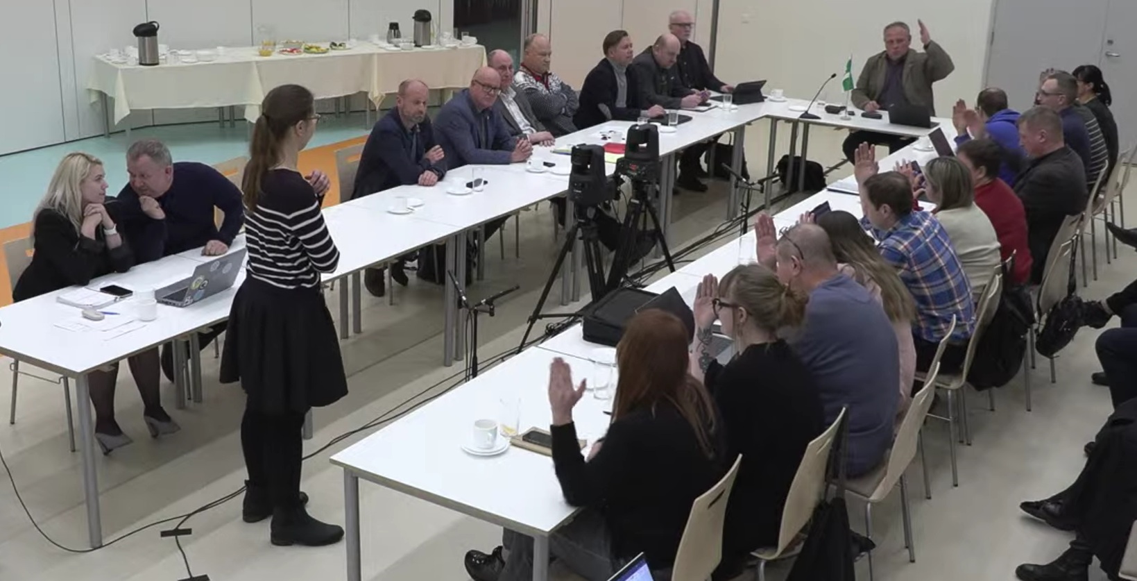 Volikogu esimehe Mikk Lõhmuseumbusaldamise poolt hääletas 13 saadikut. Foto kuvatõmmis