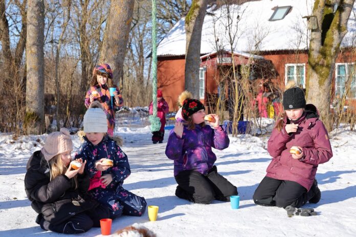 Metsküla kooli lapsed vastlapäeva pidamas. Foto Kaarel Kaisel