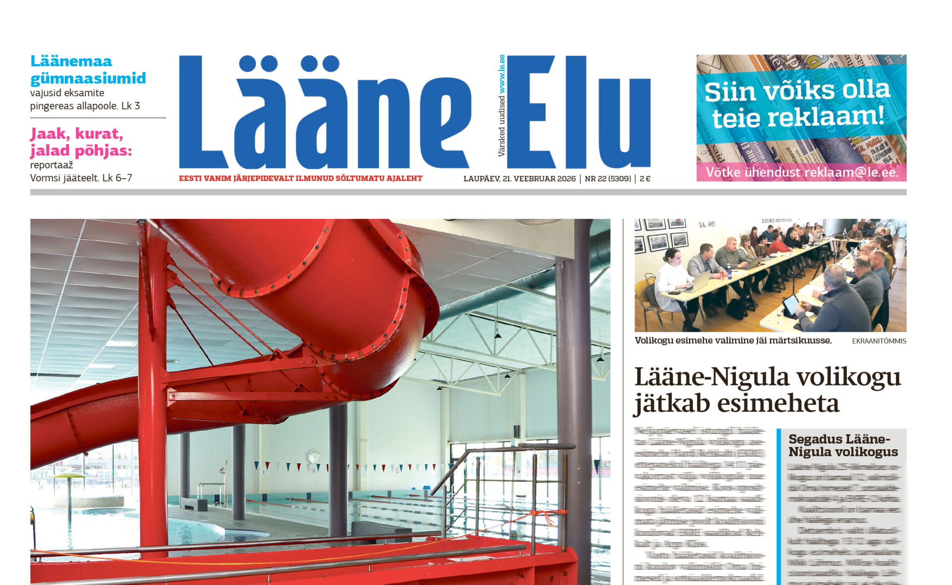Lääne Elu paberleht laupäeval, 21. veebruaril