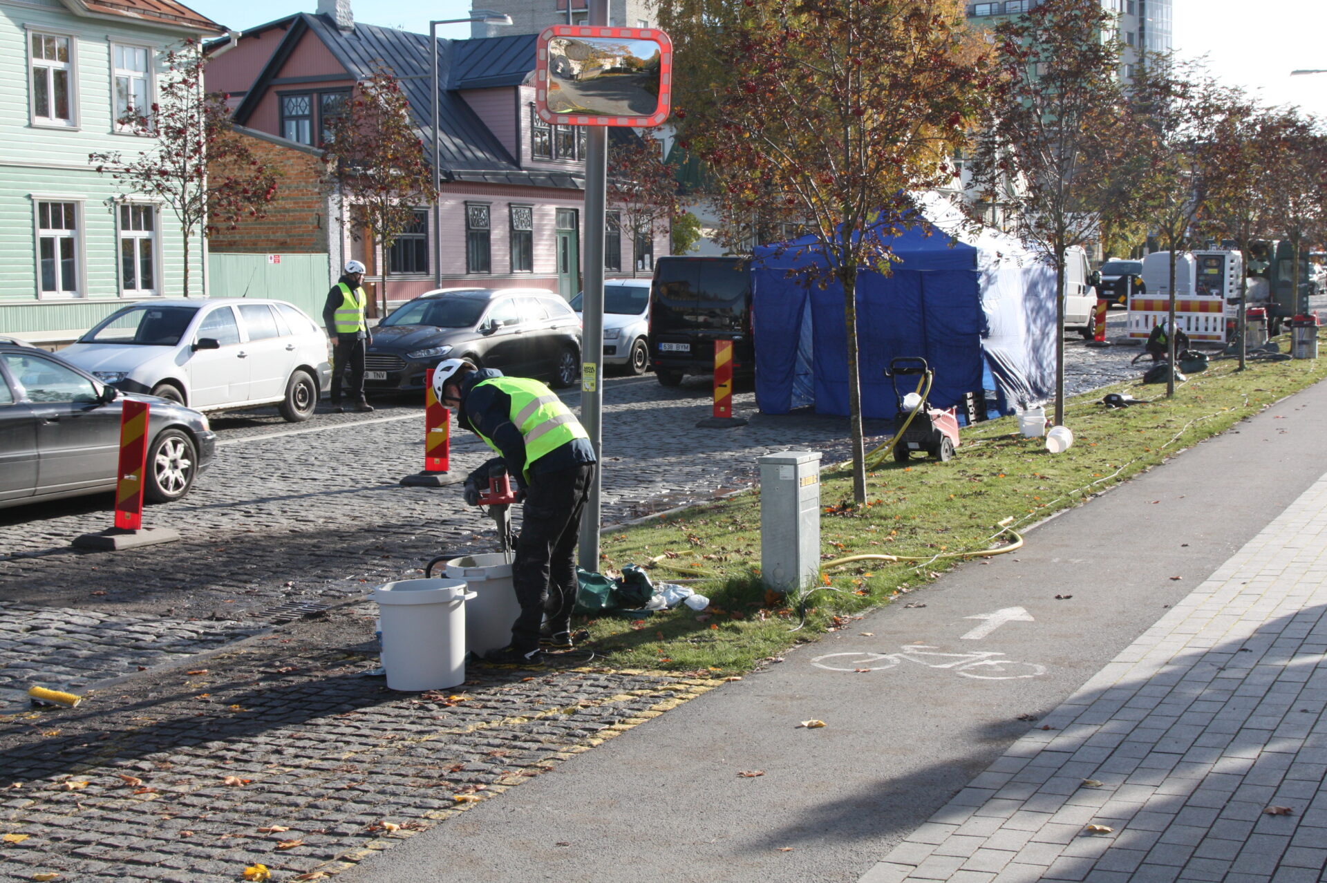 [caption id="attachment_417380" align="alignnone" width="1920"] Selleks, et autojuhid Posti tänava rattateele ei pargiks, on lisaks märkidele tee külgedel ka lindid. Foto: Malle-Liisa Raigla[/caption]